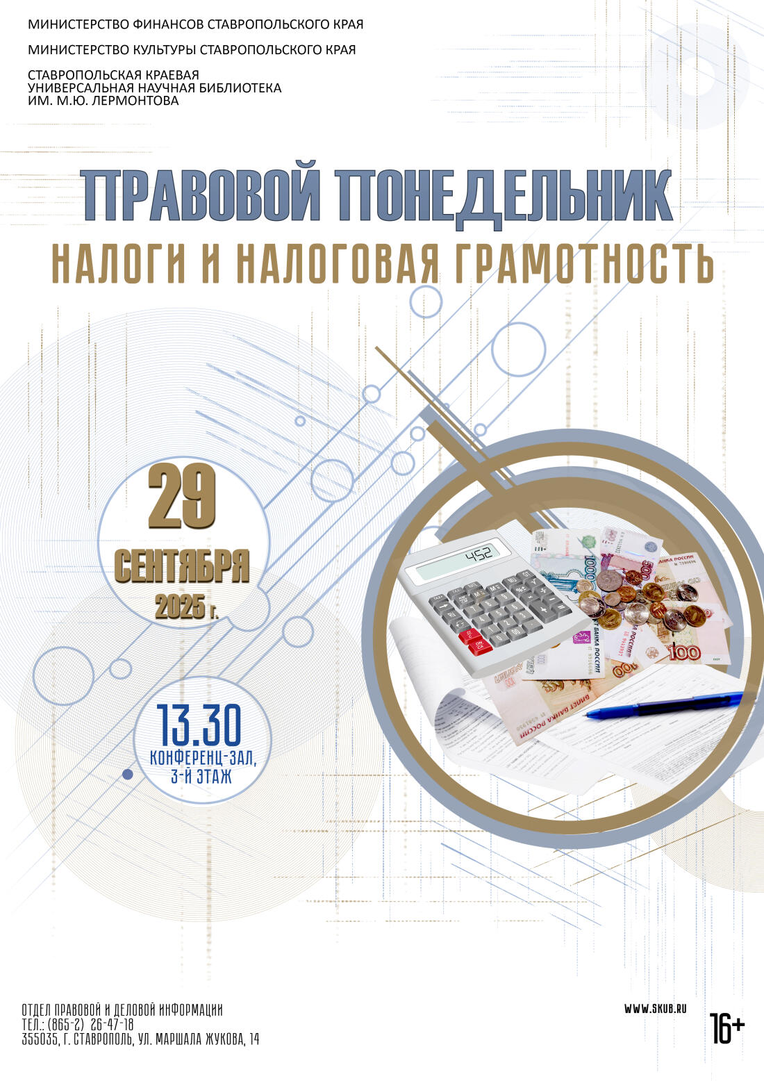 Именно поэтому Ставропольская краевая универсальная научная библиотека имени М.Ю. Лермонтова активно поддерживает инициативу повышения налоговой и финансовой грамотности населения, продолжая серию значимых просветительских мероприятий.
