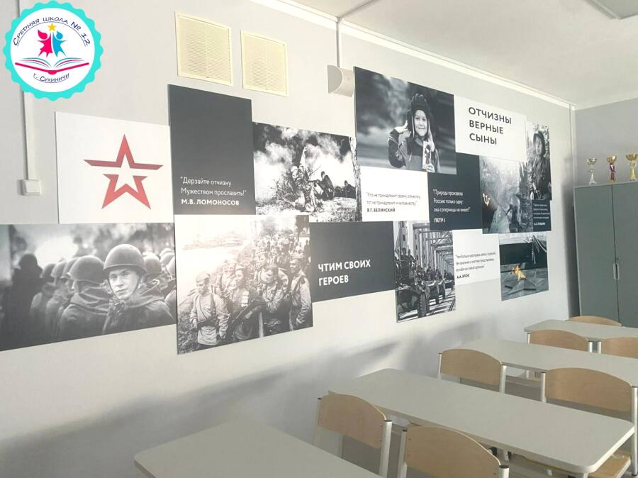 В рамках программы школьных инициатив советом старшеклассников было предложено модернизировать учебный кабинет в пространство для размещения патриотического клуба «Отчизны верные сыны».